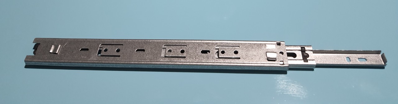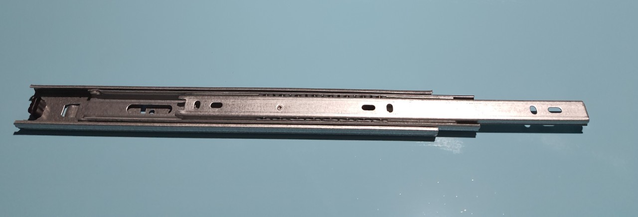 Bộ ray giảm chấn 3 tầng dùng cho ngăn kéo trong sản xuất đồ gia dụng và công nghiệp. Có lẫy gài tiền lợi cho việc lắp đặt nhanh.