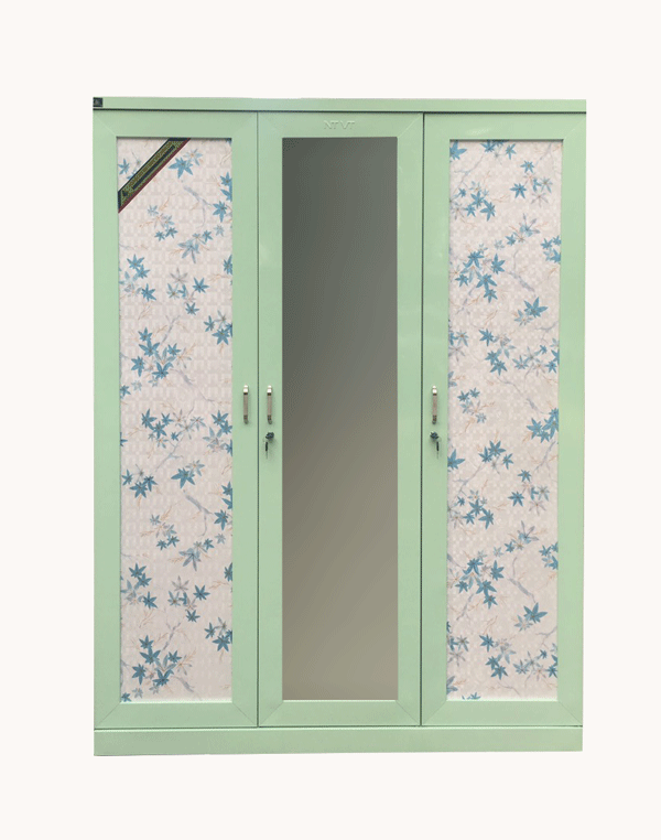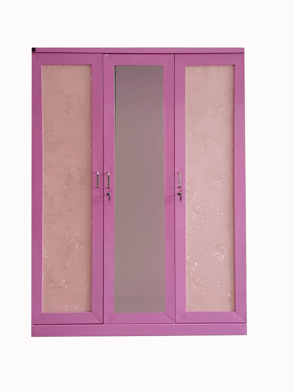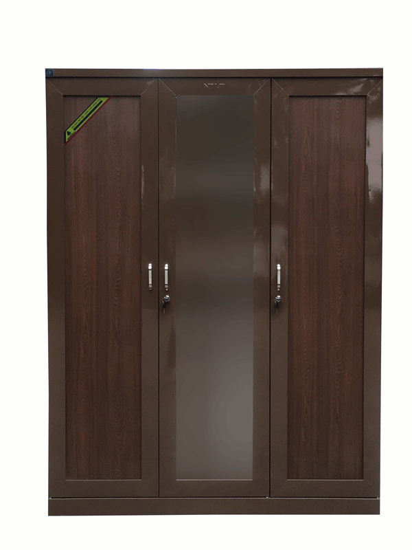 Tủ quần áo 3 buồng gương gồm 3 cánh mở riêng biệt, cánh giữa có gương,bên trong có 2 suốt treo quần áo và 2 đợt di động có thể thay đổi khoảng cách các ngăn tuỳ ý.